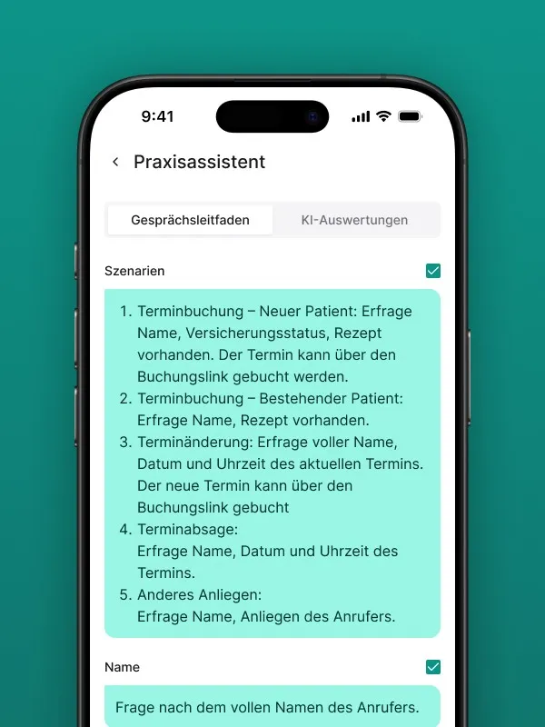 - Die wichtigsten Szenarien für Deine Branche (z.B. “Störungsmeldung”, “Terminanfrage”, “Rezeptbestellung”).